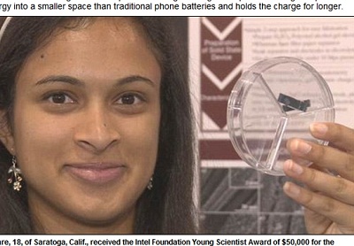 美国加州一位18岁印度裔女孩埃沙·卡瑞(Esha Khare)日前发明一款神奇充电器,能在20秒钟之内充进与普通手机电池相当的电量,在日前举行的英特尔国际科学与工程大奖赛获得了5万美元(约合人民币30万元)奖金。