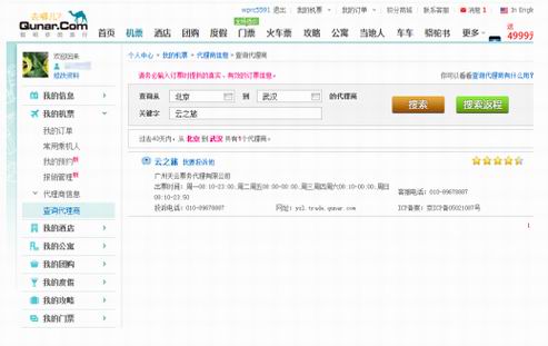 以这家名为“云之旅”的供应商为例,在用户登录后的“我的机票”菜单中,点击代理商信息,即可查询到它在中航协注册的名称是“广州天云票务代理有限公司”。