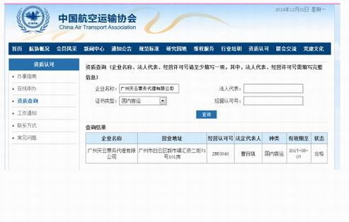 记者根据这个名字在中航协网站上查询到,它的经营认可号是ZN53040,有效期至2017年8月。