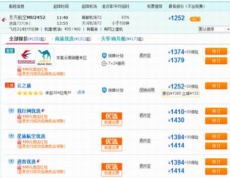 记者随后在去哪儿网的机票页面进行查询时看到,每个报价下面都列出了供应商的名称。